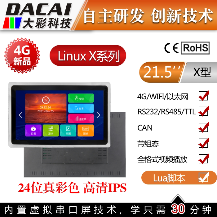 21,5 -INCH 1920*1080 Serial Screen Scence Scence 4G Wi -Fi Ethernet Can Guangzhou Da Cai