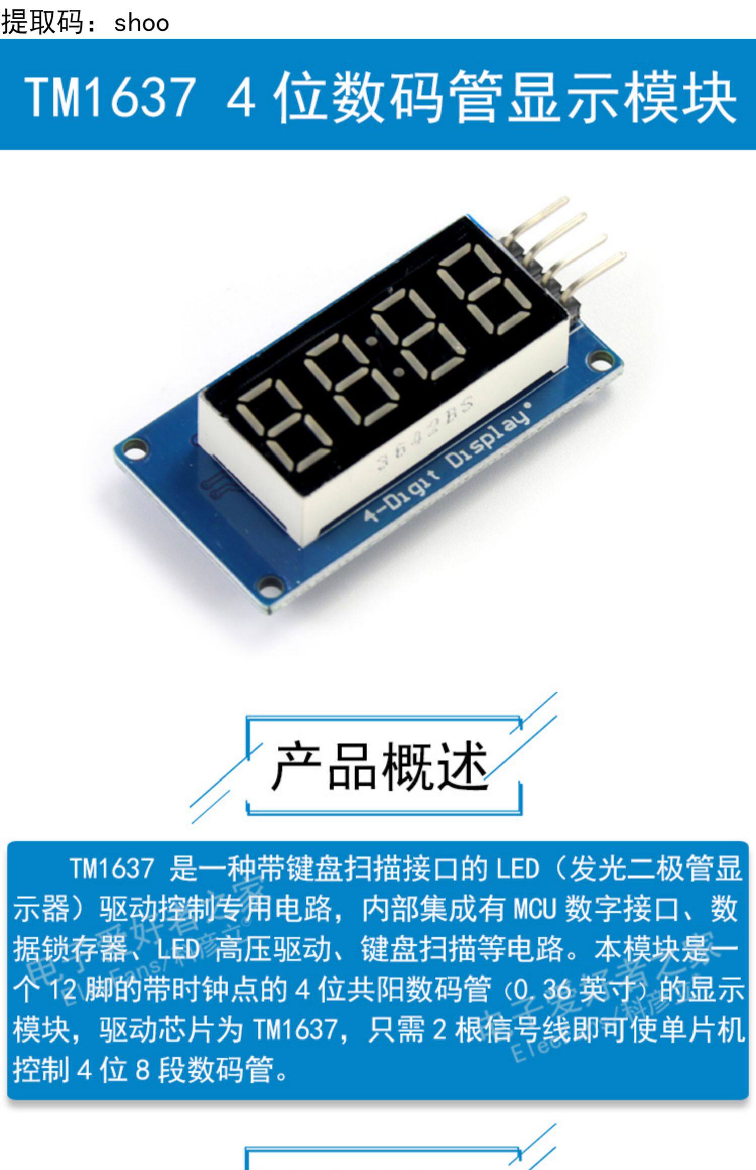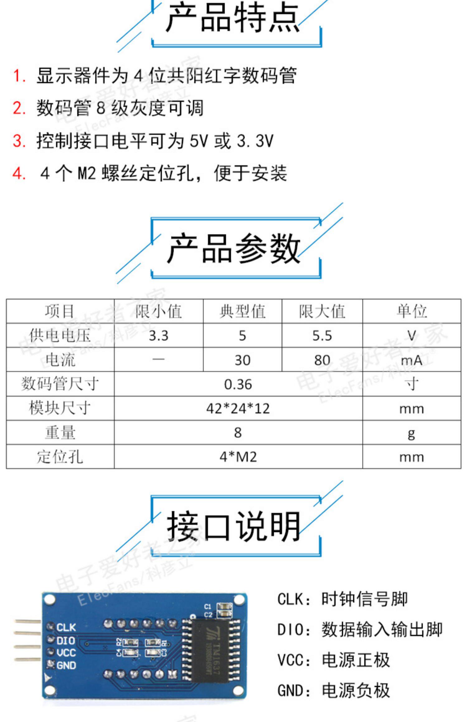 TM1637 4 -бит -часовой цифровой пробирки модуль дисплея