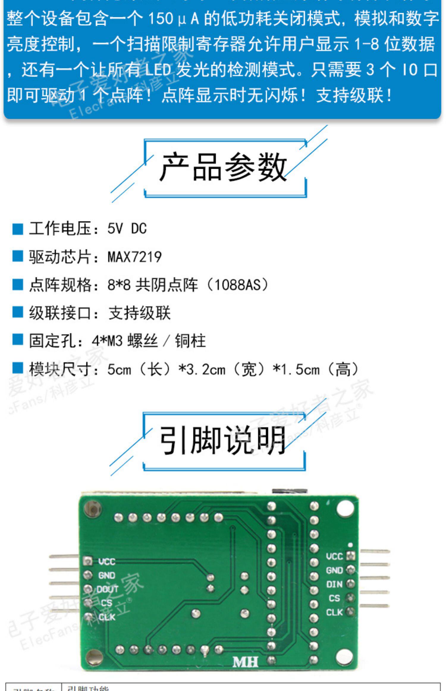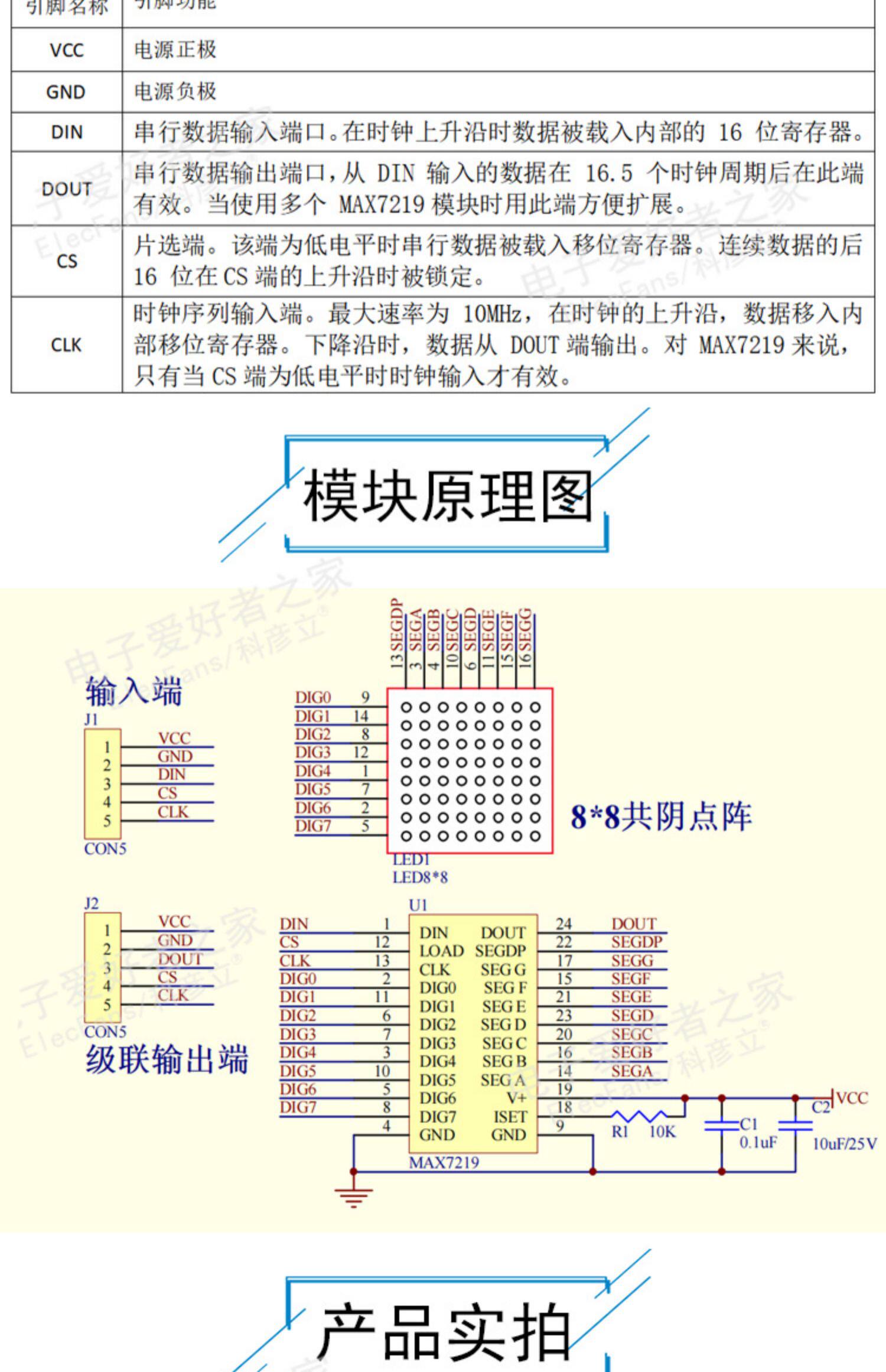 MAX7219 точечный бататный модуль 8*8