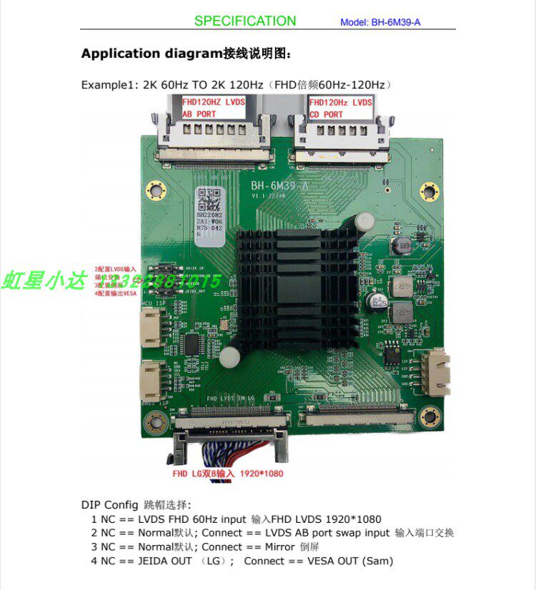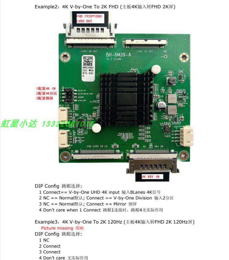 BH-6M39-A 4K Motherboard Dot 2K Экран VBO до LVDS/60 Гц до 120 Гц двойной платы