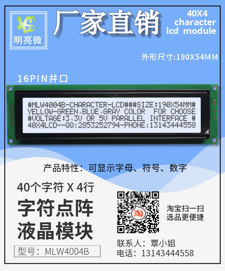 4004 ЖК -экранный модуль 16PIN и рот ЖК -экран 40x4 Модуль отображения символов MLW4004B