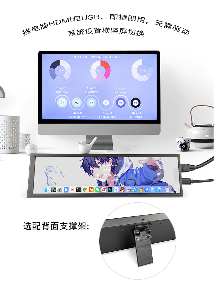 Компьютерный шасси подэкрана размер размер портативной длинной полосы типа C Host Touch Touch Smost Small Display