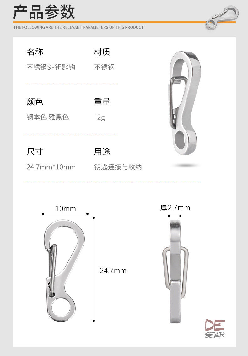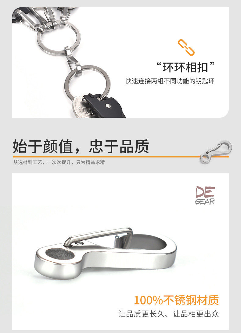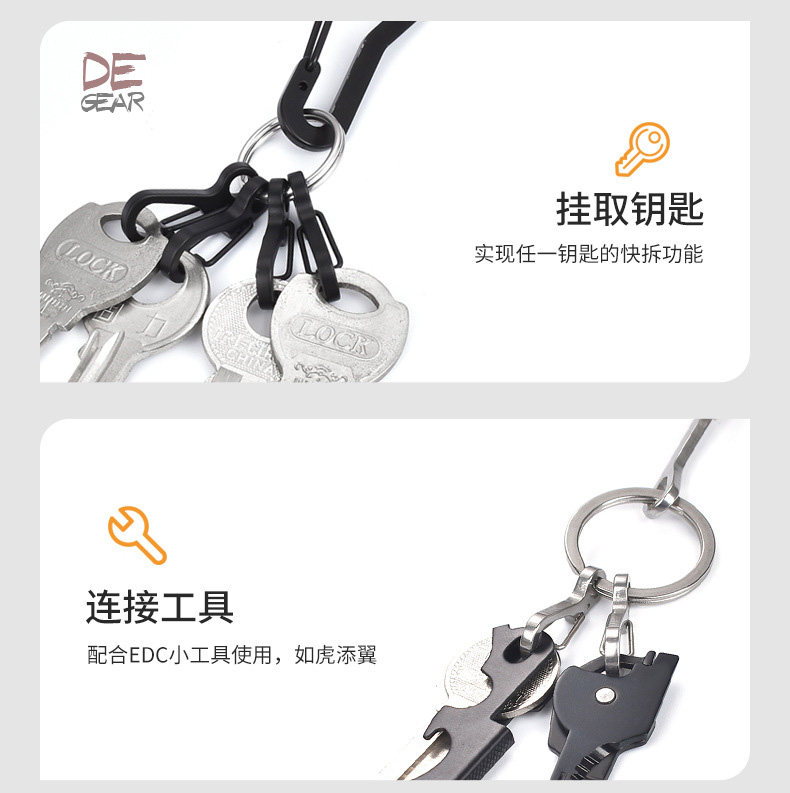 Металлическое тактическое дорожное снаряжение для ключей с застежкой из нержавеющей стали, универсальный брелок