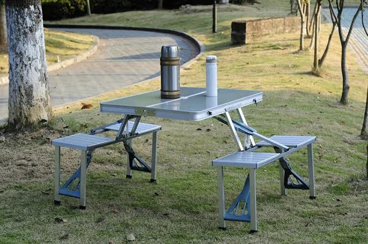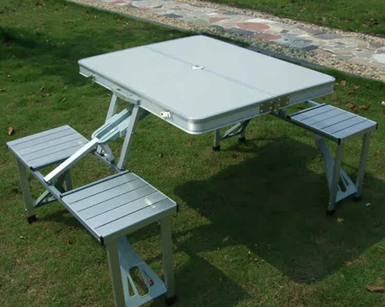 Складной стол алюминиевого сплава и стул на открытом воздухе.
