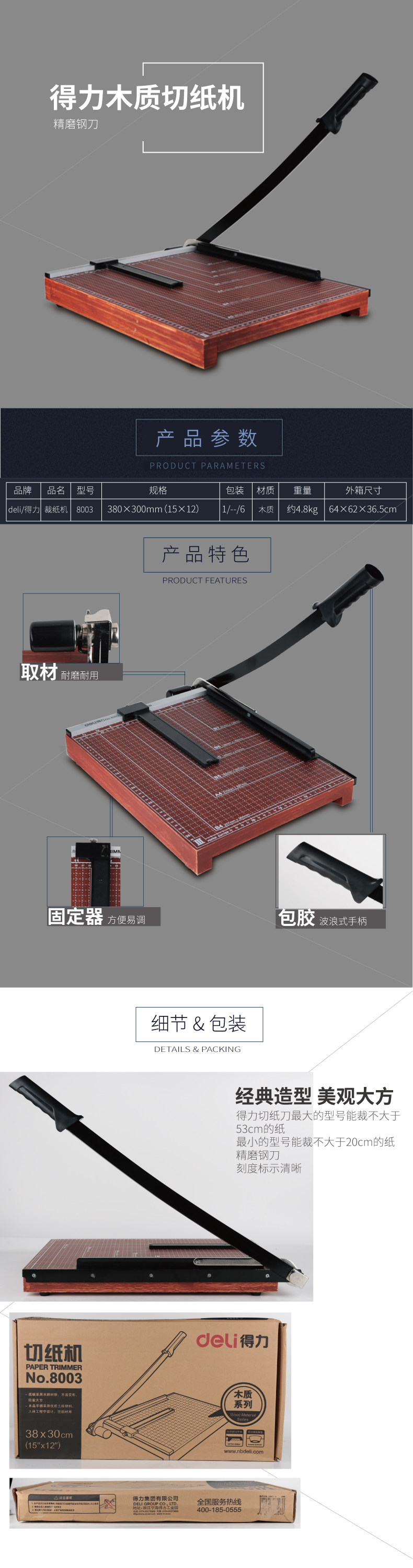 Deli Georgical Rutch Paper Machine Деревянная режущая машина сталь сталь из деревянной режущей бумаги ручная бумага Режущая бумага Бумажная бумага стальной нож картон B3 A3 B4 A4 B5 A5 Режущий бумажный нож 8016 8016