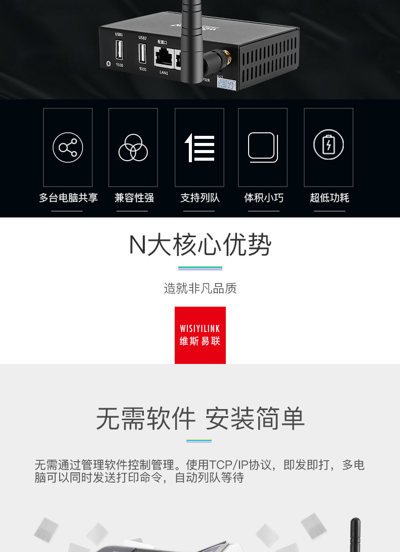 Wisiyilink Беспроводной печати сервера Wi -Fi сеть сеть с двойным USB Удаленный мобильный телефон Печать