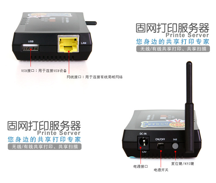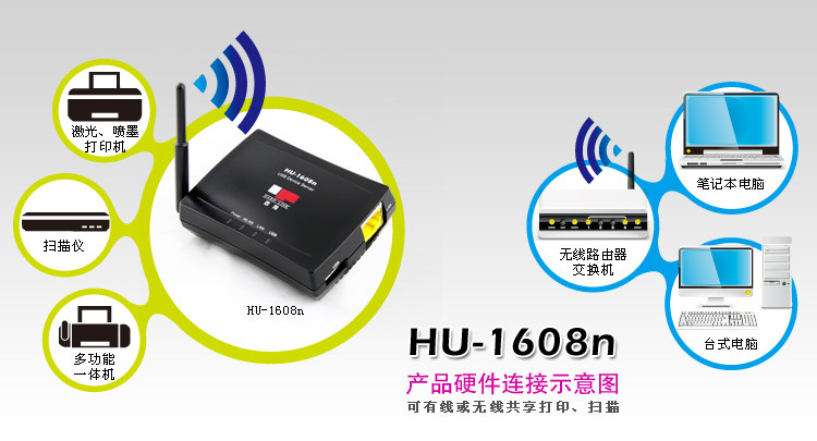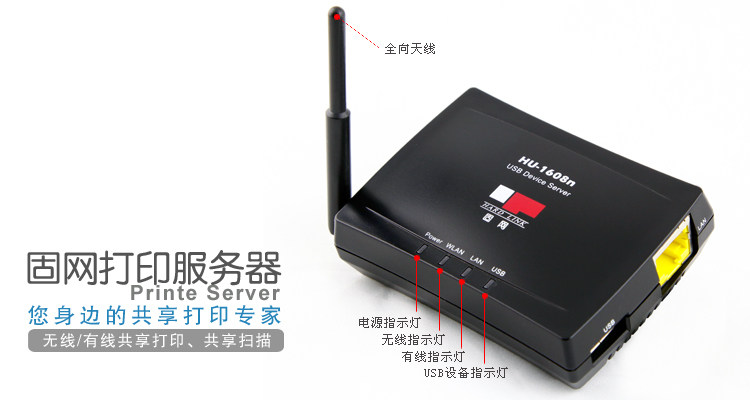 Фиксированная сеть HU-1608N Беспроводной сервер печати USB Printer Swith Shower Deving Scaning