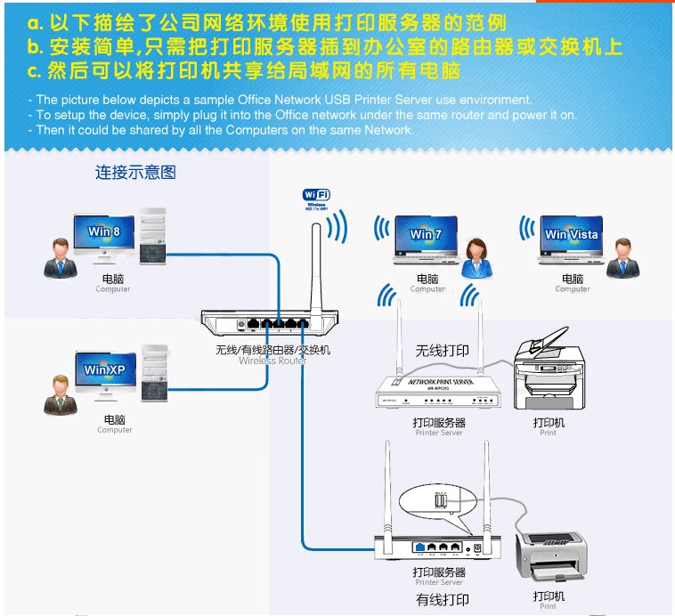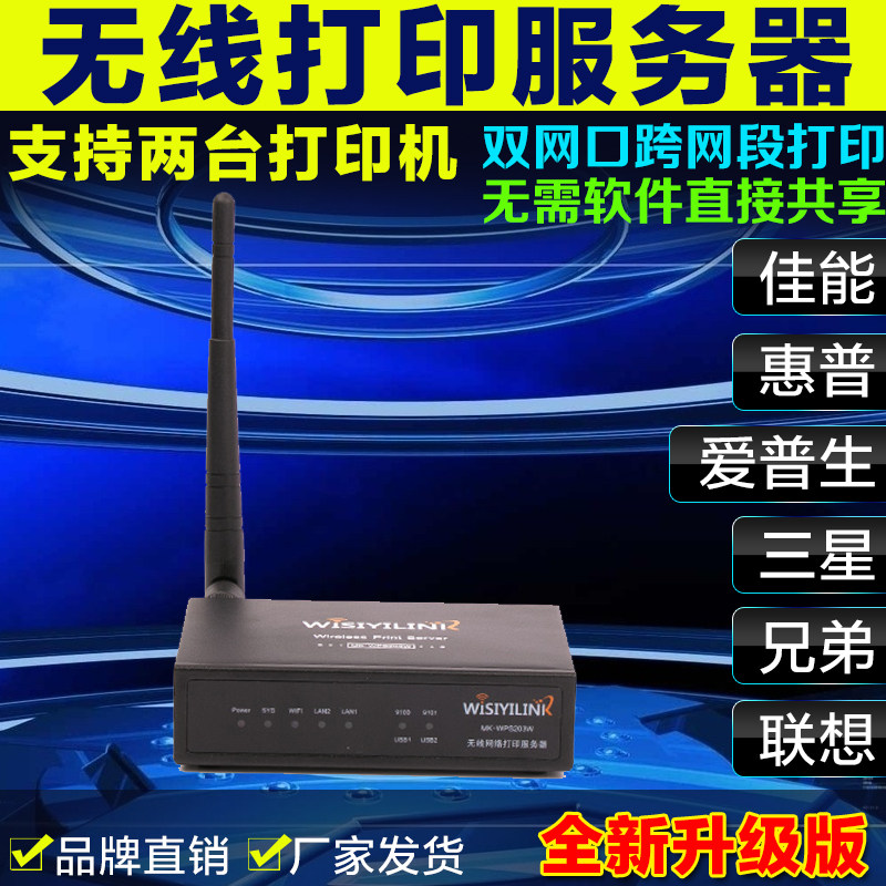 Wisiyilink Двойной USB -порт Wireless Wi -Fi Printer Server сетевой сетевой сегмент перекрестный сегмент -сегмент -сегмент