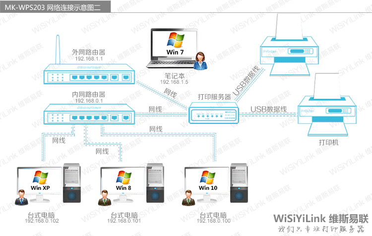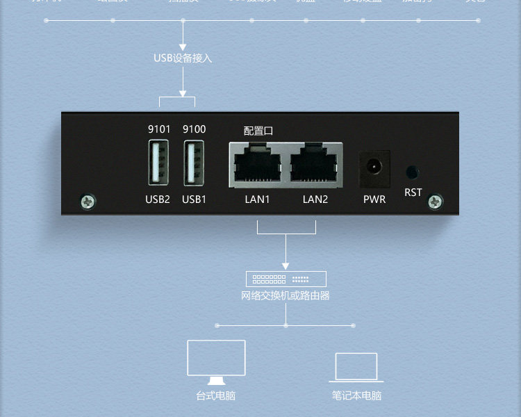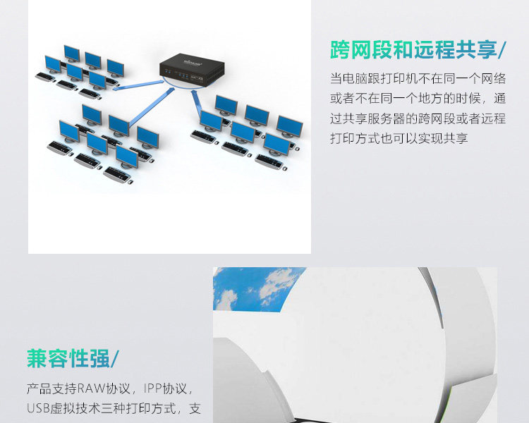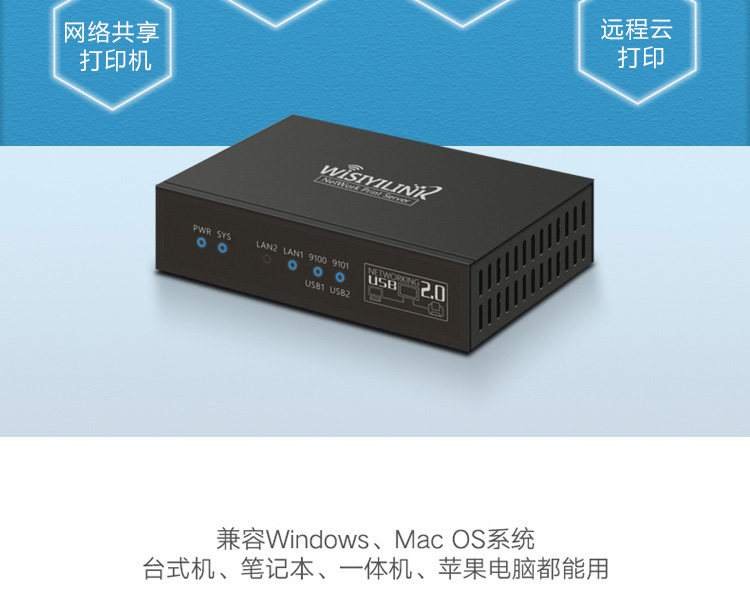 Проводной сервер печати с двумя USB-портами, сетевой общий принтер, печать самообслуживания с мобильного телефона, удаленная печать с компьютера