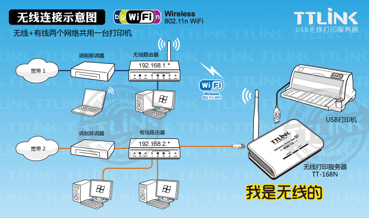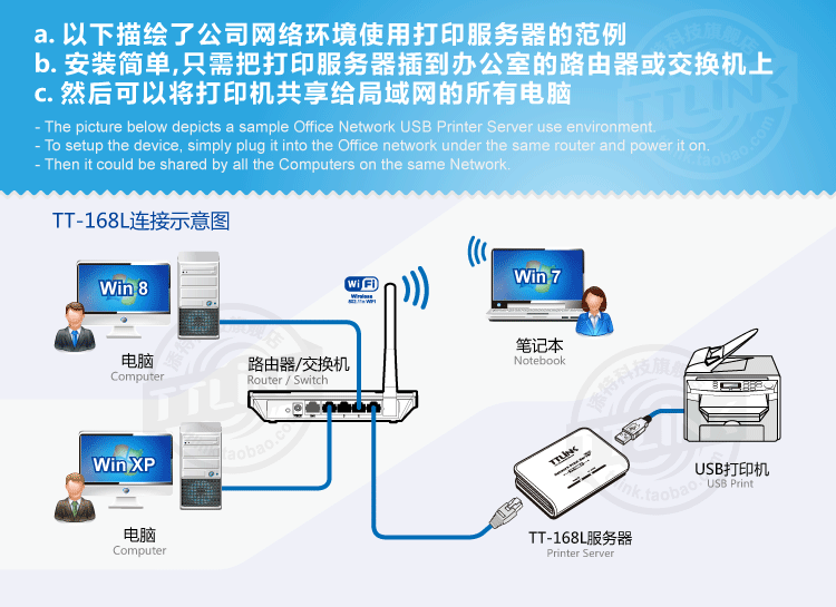 Оригинальная подлинная модификация ttlink в сетевую печать, сканирование общего устройства USB беспроводной печати сервер 168L1