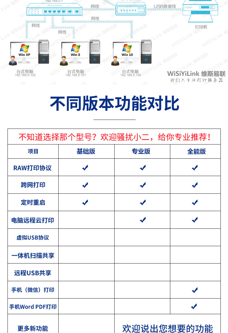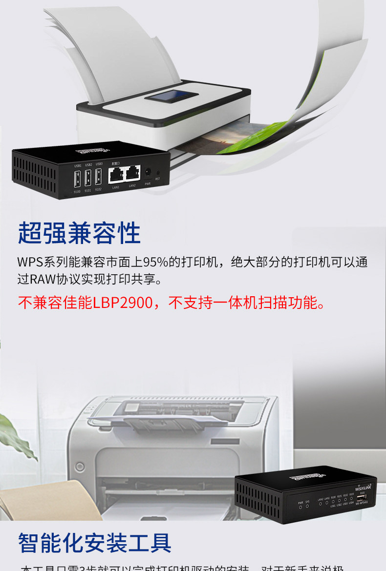 Wisiyilink Network Printing Server 3USB Cable Sare Print Scanning USB -принтер передача принтера