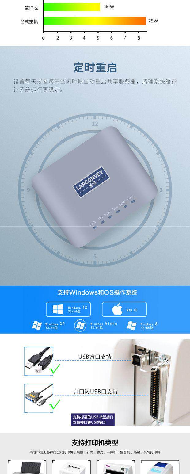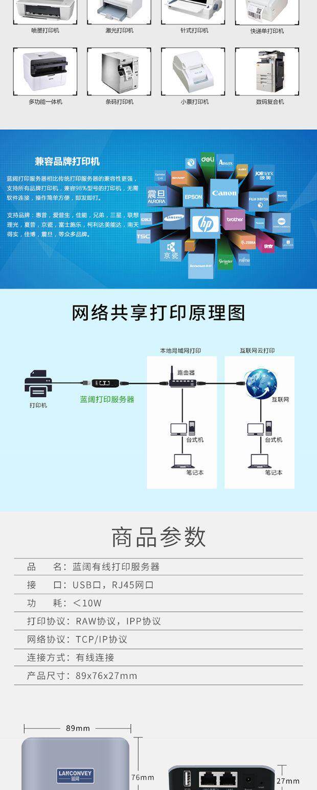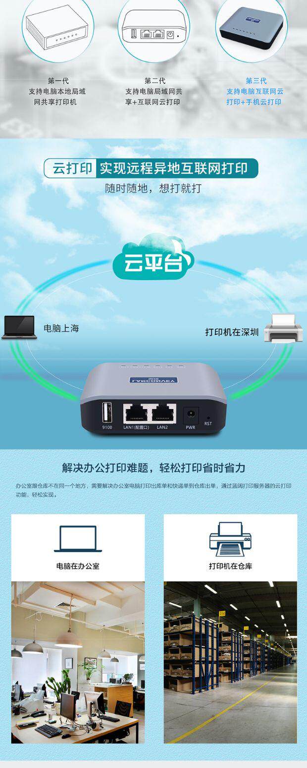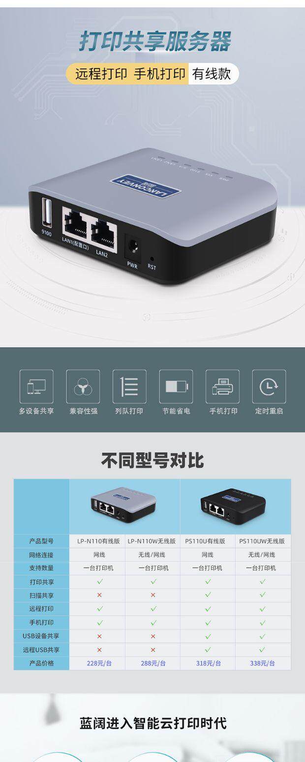 Синий широкий USB -принтер Shared Device Server поддерживает сегмент сегмента сегмента перекрестия