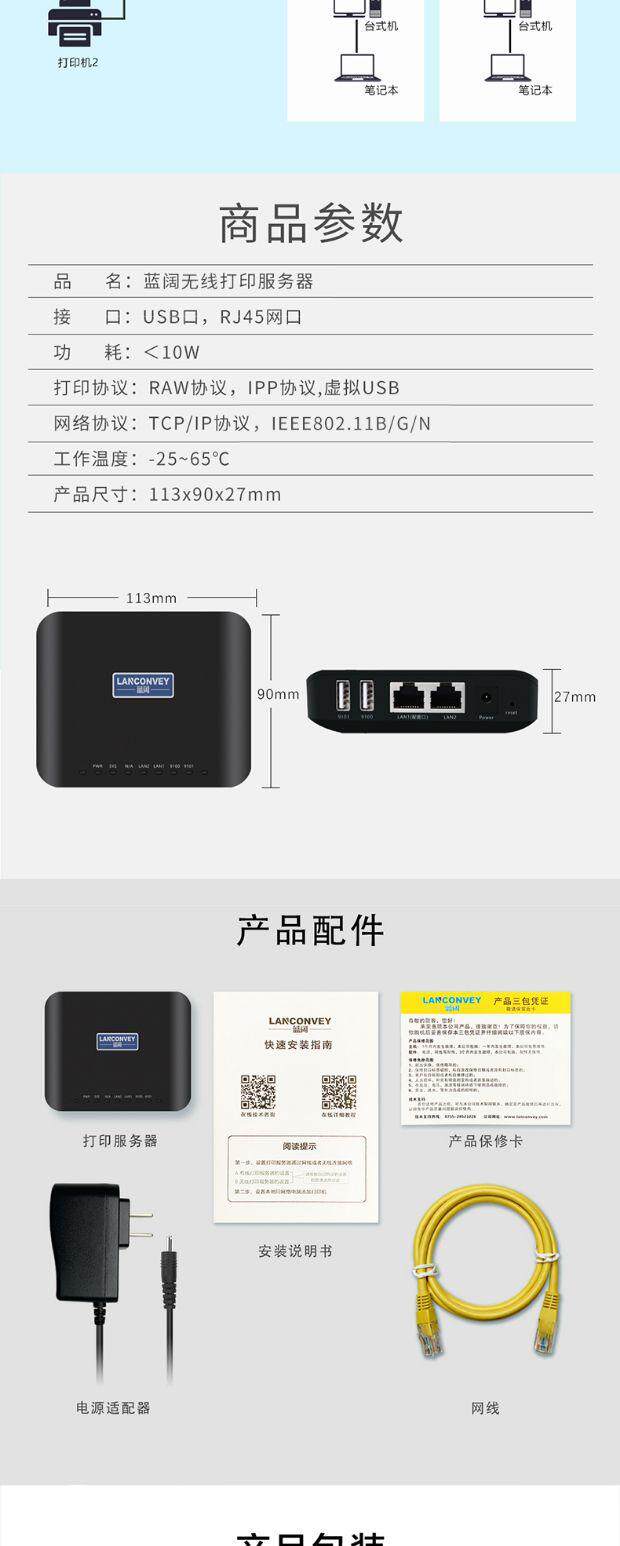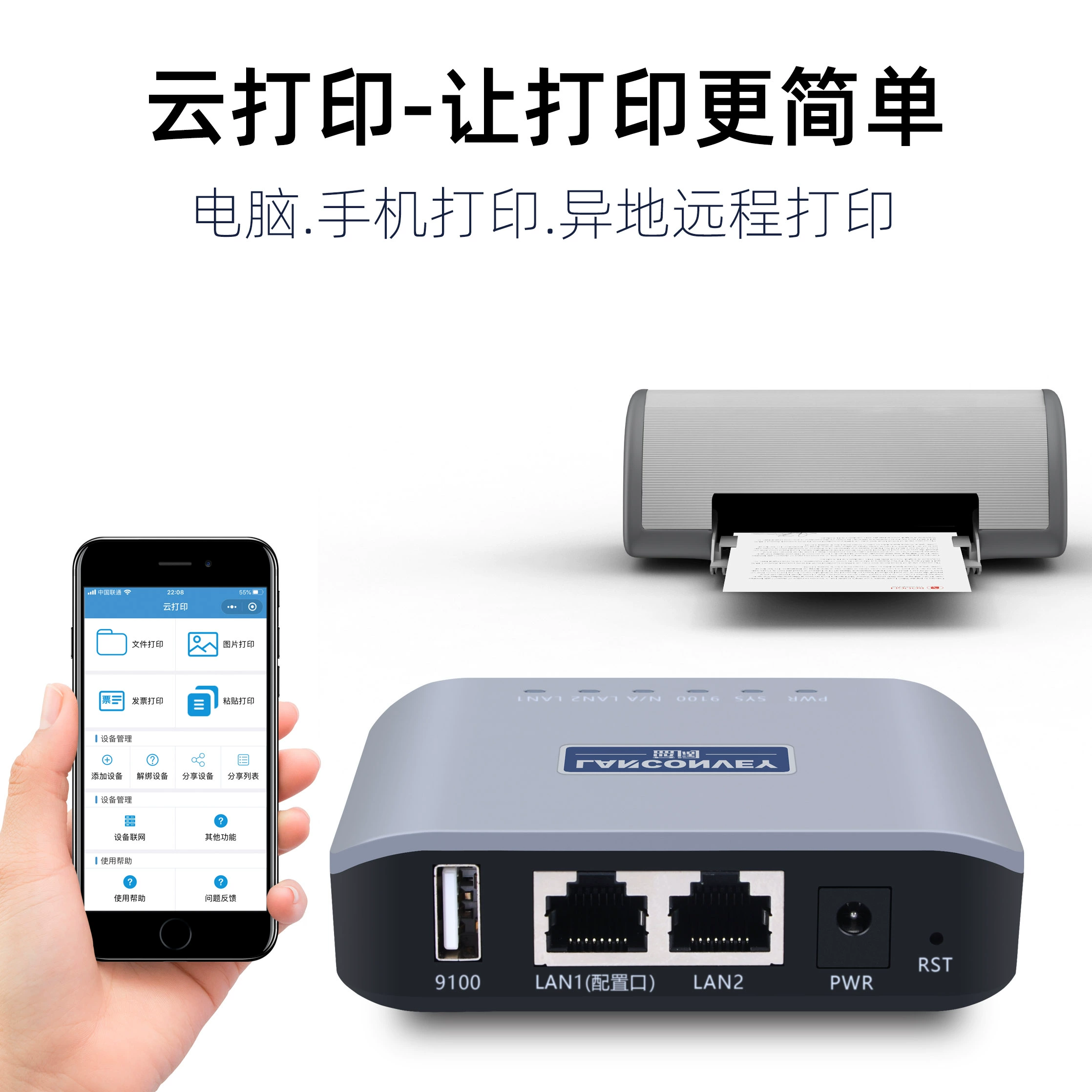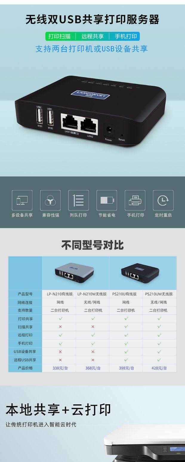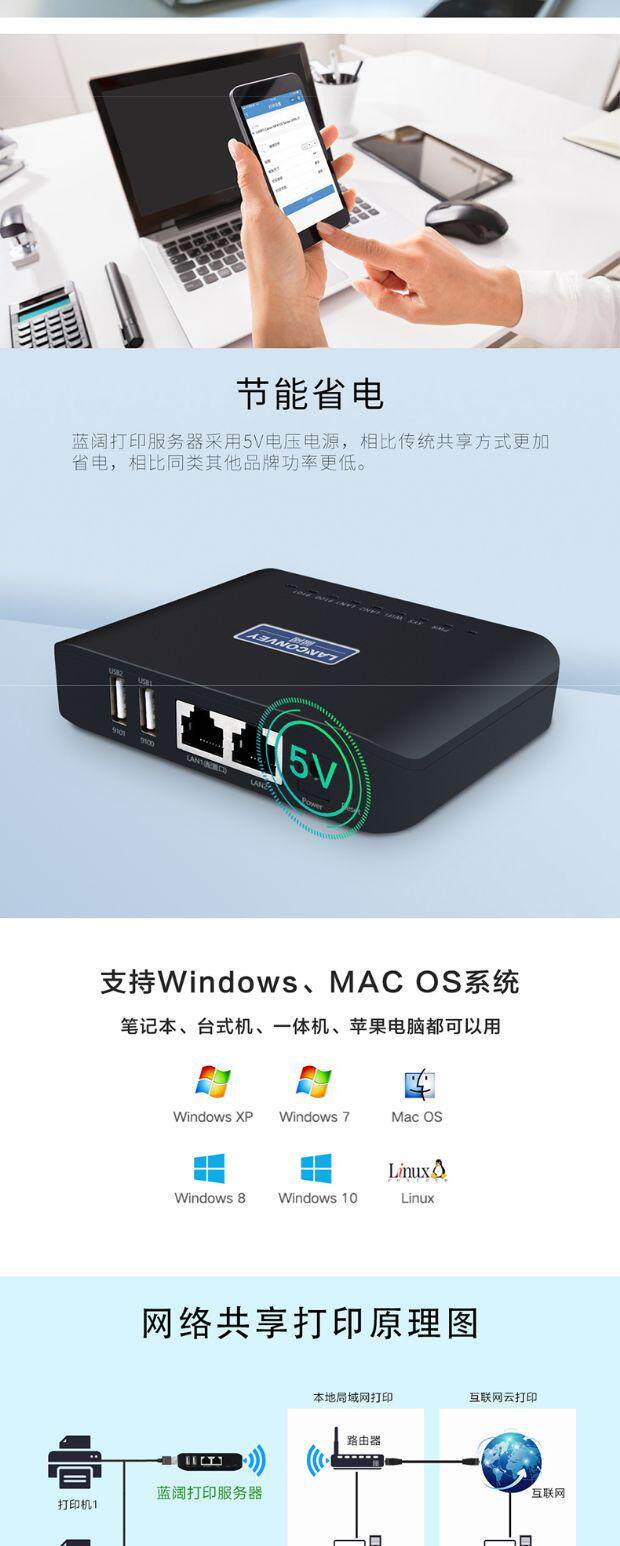 Blue Wide Wide Printer Server USB -устройства Cross -Network Mobile Phine Printing, сканирование удаленного облачного печати пакета