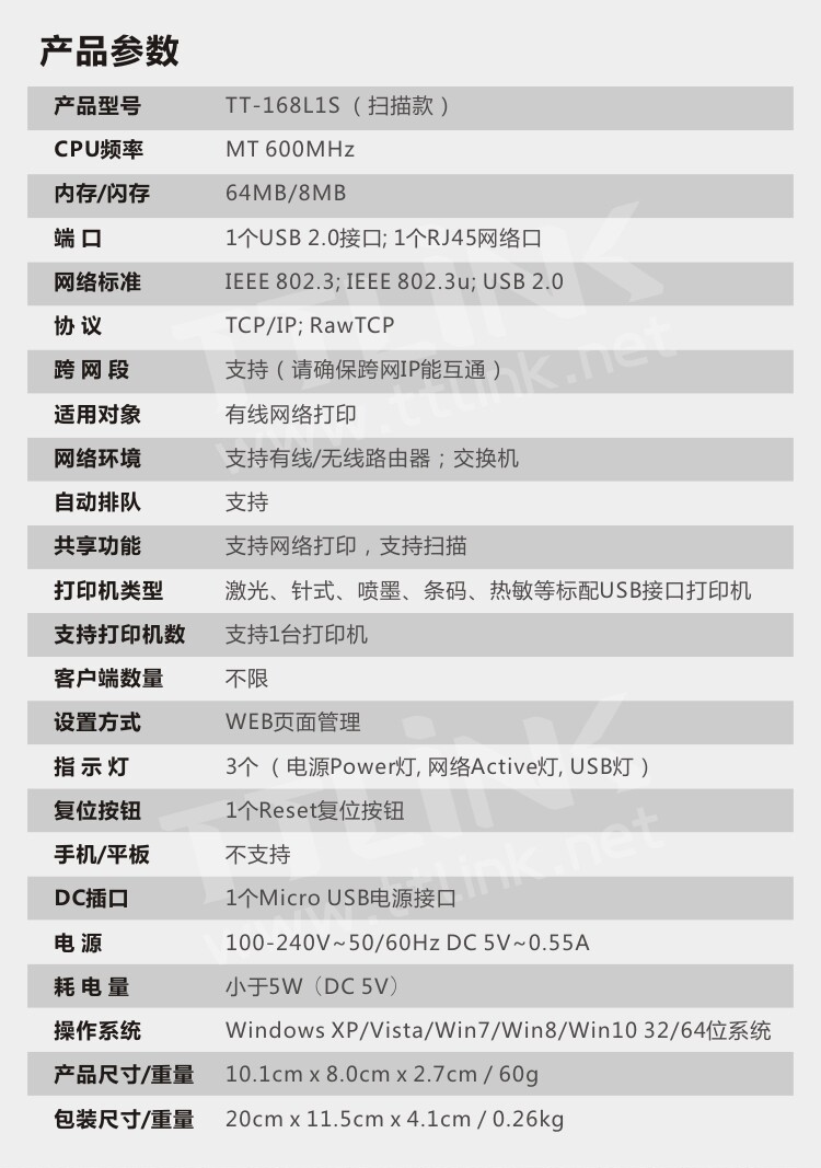 Новый TTLINK USB -сервер печати печати/Сканирование сети.