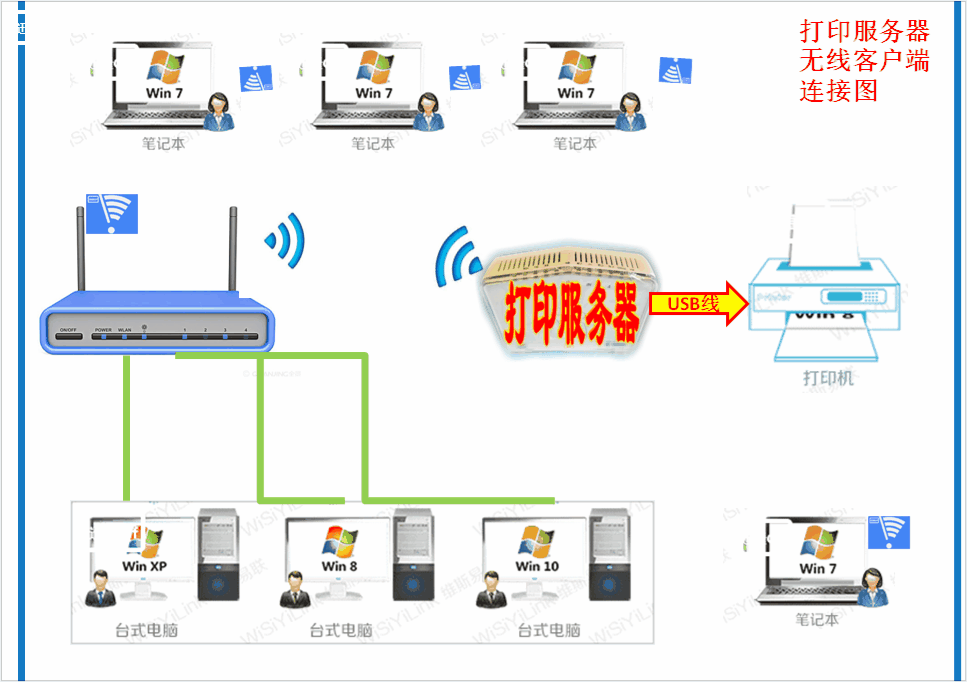 Каждое устройство имеет интерфейс USB, который может подключить USB -принтер, а компьютер в одной и той же локальной сети может быть напечатан.