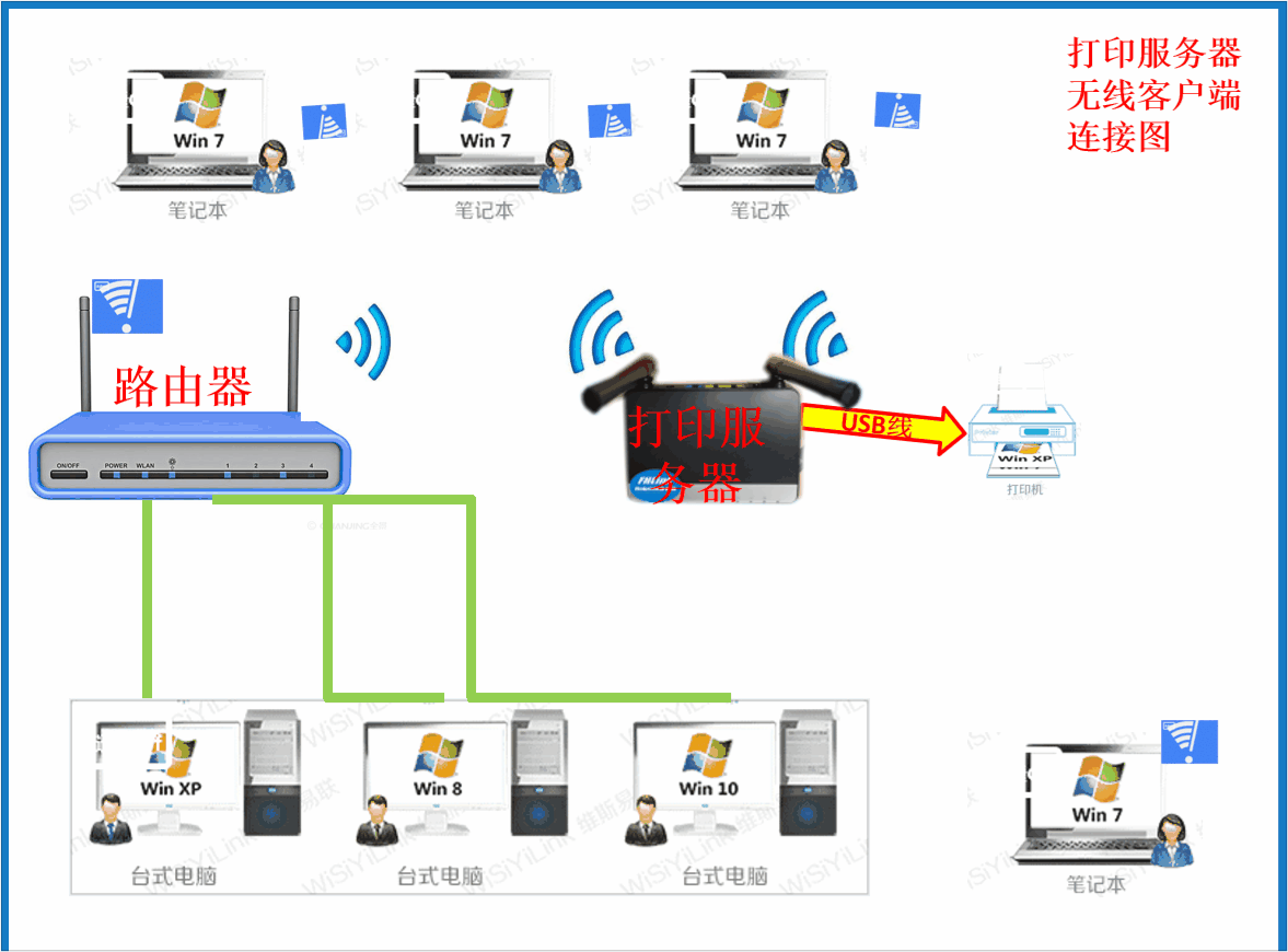 Может быть подключен одновременноСтол или несколько USB -принтер, компьютеры в той же локальной сети, которые могут быть напечатаны.