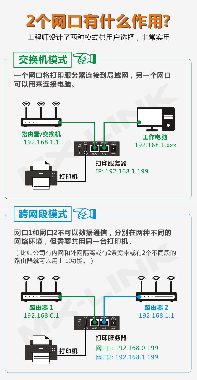 Проще говоря, это устройство, которое позволяет принтеру достигать сетевой печати. Многие принтеры с низким уровнем не имеют сетевой карты и не могут достичь сетевой печати. Многие компьютеры могут использовать принтер. Файлы копирования неудобны и влияют на других. По разным причинам, таким как компьютерные использование разных или системных версий, не подходят для интервью друг с другом, компьютер не может обмениваться принтером, а затем используйте сервер печати для его решения, подключите принтер к сети, исправить IP -адрес Под маршрутизатором или коммутатором. Добавьте принтер и отправьте контент печати непосредственно на сервер печати. Сервер печати отправляет данные в принтер через USB для достижения сетевой печати.