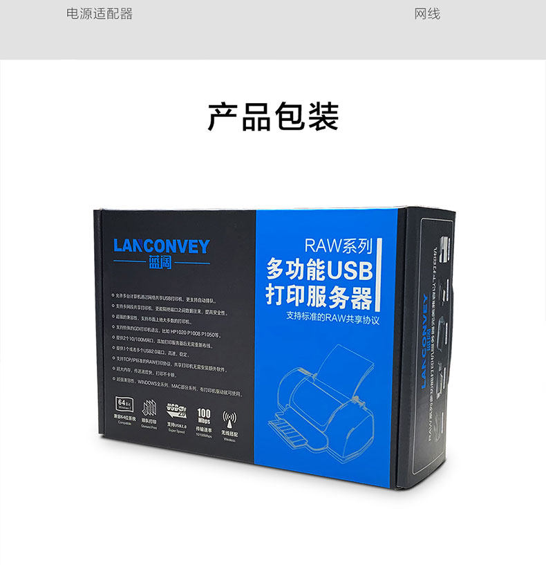 Lanwu PS110U Фиксированная сеть многофункциональная USB -сервер Share Seared Moder Printer Medie Wireless Printing Box House