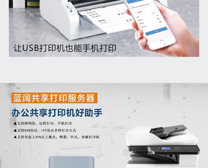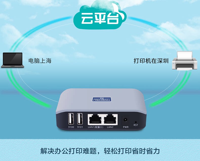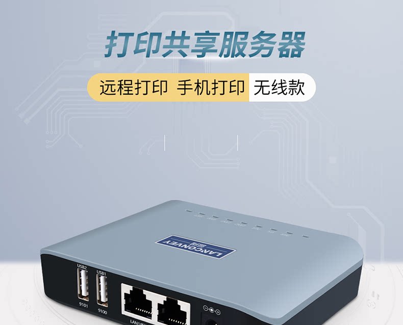 Lankuo LP-N211W Беспроводная печатная сервер поддерживает двух принтеров, разделяющих удаленную облачную печать мобильный телефон Печать предприятия WeChat Docking Pin Thermal Laser Laser
