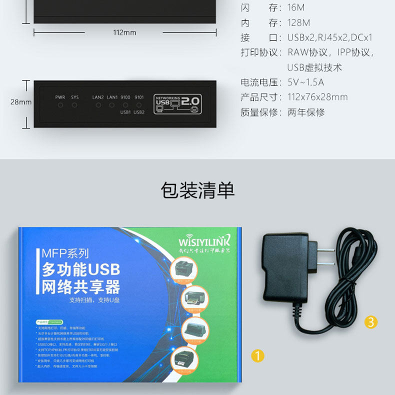Vesic MFP201W All -Around Version Multifunctional Dual USB Buck Print Server сеть сеть.