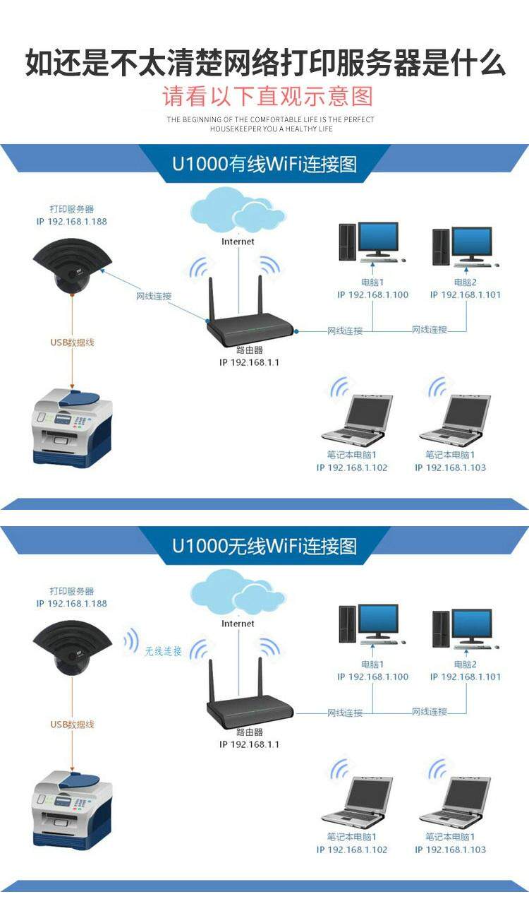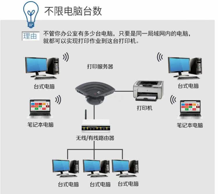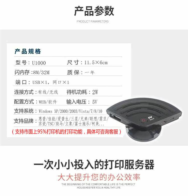 Небольшой мини -USB -принтер сервер Wireless Wi -Fi/Wired Swield Shower Device не требует программного обеспечения