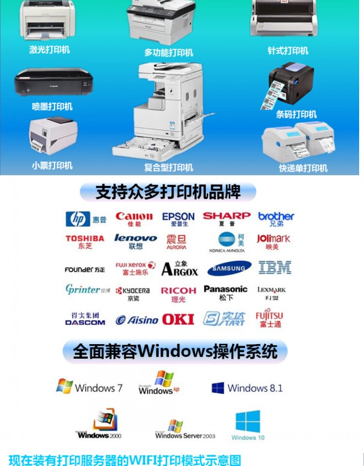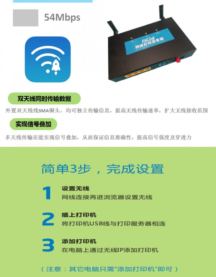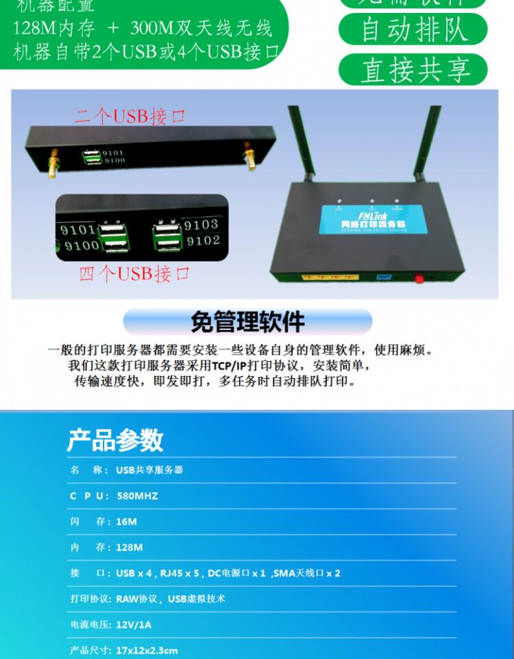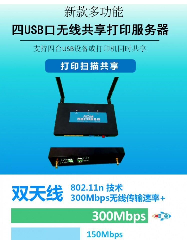 Multi -USB -порт к Wi -Fi беспроводной перекрестной печать, сканирование общего сервера, устройства обмена беспроводным принтером
