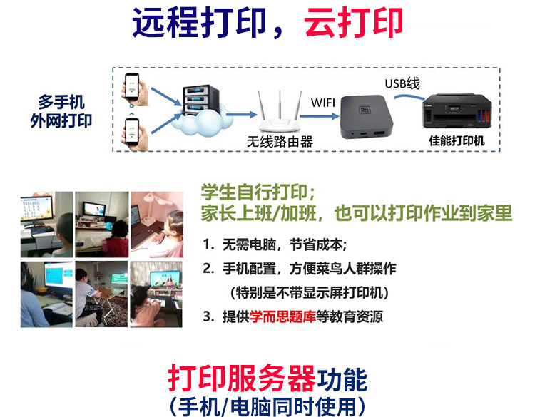 Интеллектуальная облачная коробка Wi -Fi беспроводное подключение к мобильному телефону Облачная печать сеть Поделиться белой учебной окно S