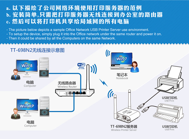 Новая двойная беспроводная сеть USB Wireless Printer Server