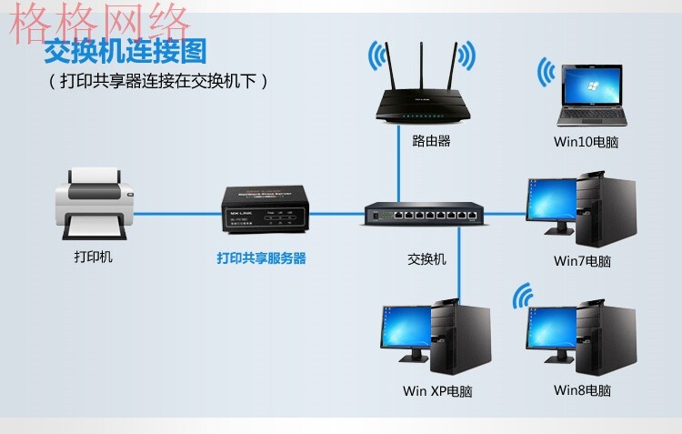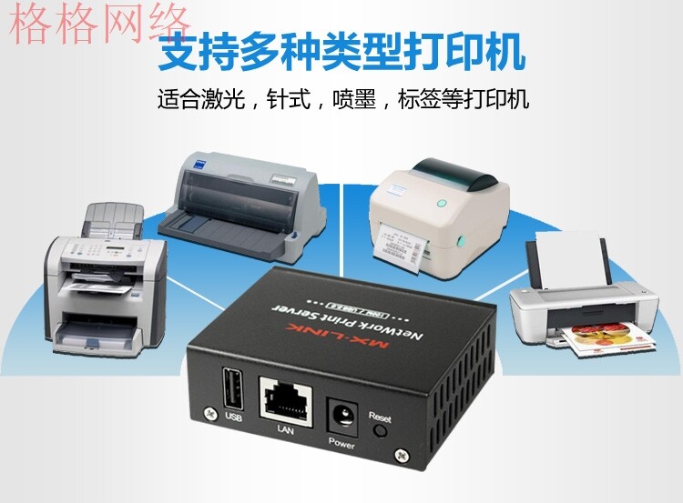 Проще говоря, это устройство, которое позволяет принтеру достигать сетевой печати. Многие принтеры с низким уровнем не имеют сетевой карты и не могут достичь сетевой печати. Многие компьютеры могут использовать принтер. Файлы копирования неудобны и влияют на других. По разным причинам, таким как компьютерные использование разных или системных версий, не подходят для интервью друг с другом, компьютер не может обмениваться принтером, а затем используйте сервер печати для его решения, подключите принтер к сети, исправить IP -адрес Под маршрутизатором или коммутатором. Добавьте принтер и отправьте контент печати непосредственно на сервер печати. Сервер печати отправляет данные в принтер через USB для достижения сетевой печати.