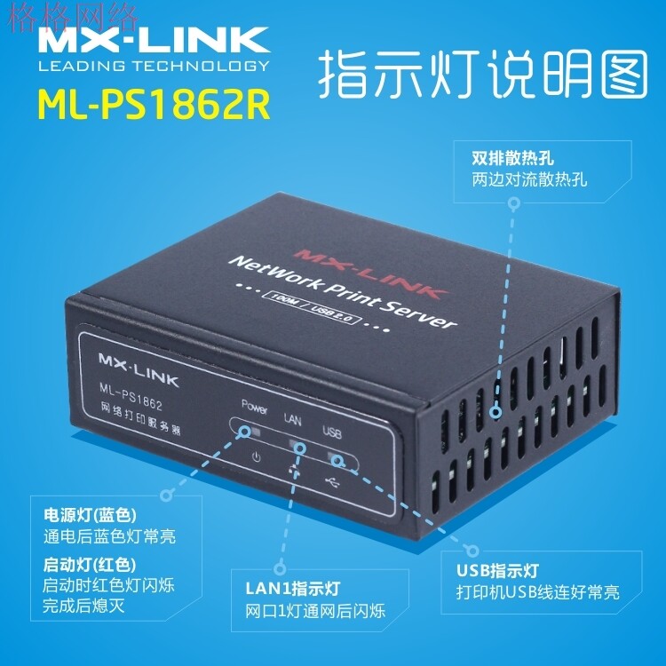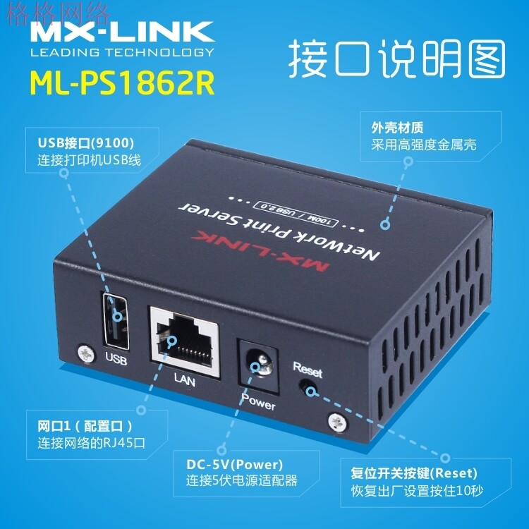 MX-Link Dual USB-проводной печати сервера Share Shipting Shower Shower Device для перекрестной сети PS8826L