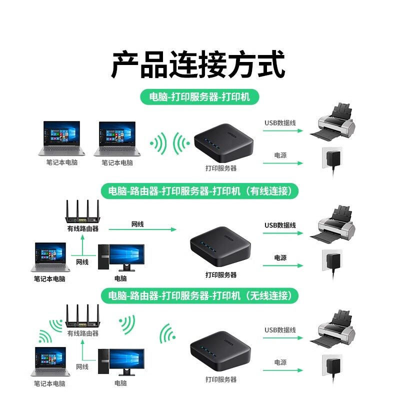 绿联 Сеть принтера Share Service Беспроводной прием автоматического переключателя USB-модуль USB-модуль Wi-Fi