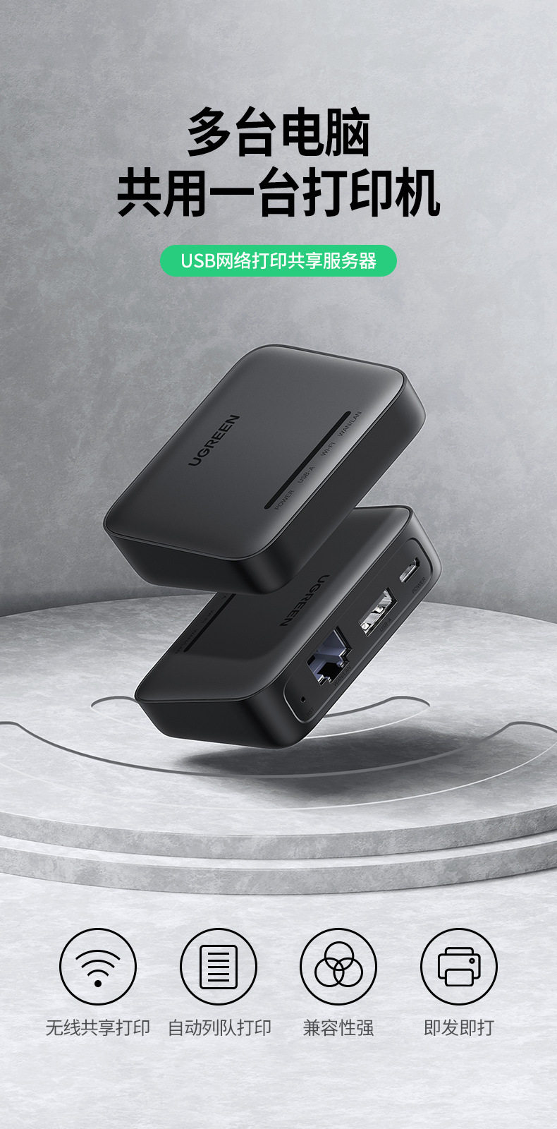 绿联 USB Wireless Network Printing Server Wi -Fi Print Sharing Автоматический очередь для печати 10941