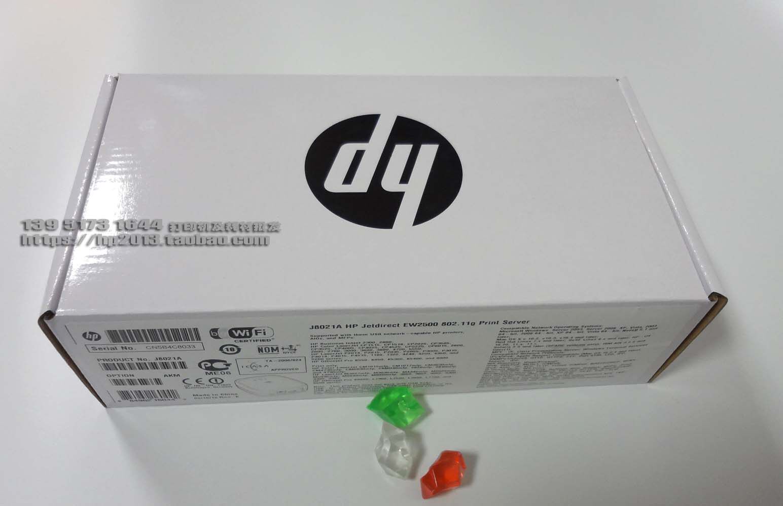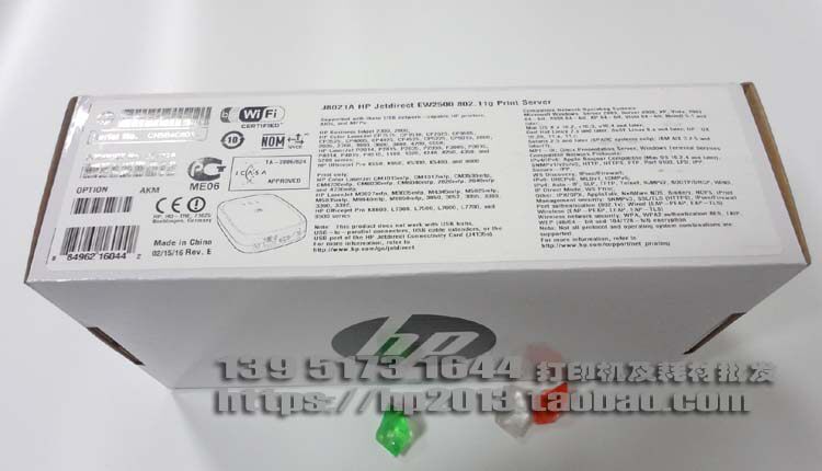 | HP JetDirect EW2500 802.11b/G Беспроводная печатная сервер (J8021A) | Используйте функции безопасности для защиты данных беспроводной печати.Поместите различные различные типы принтеров в беспроводную сеть или непосредственно вставьте систему Ethernet.Легко установить, установить и управлять. | 1550ЮаньTEL: 13951731644 |