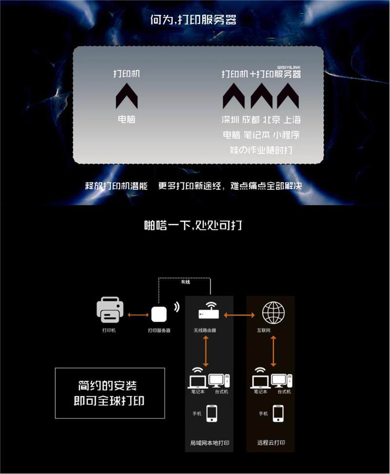 Сервер печати SF Express Cloud Box USB-принтер Совместное использование сети Мобильный телефон Компьютер Удаленное управление HP