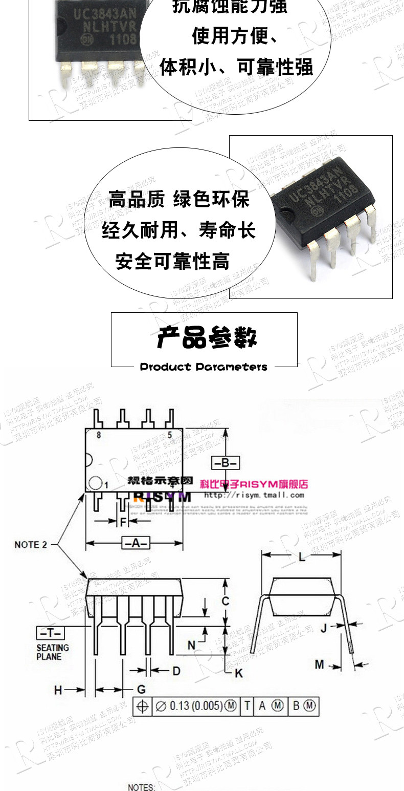 Risym UC3843 UC3843AN IC Chip Chip Direct упаковка Dip8 (2)