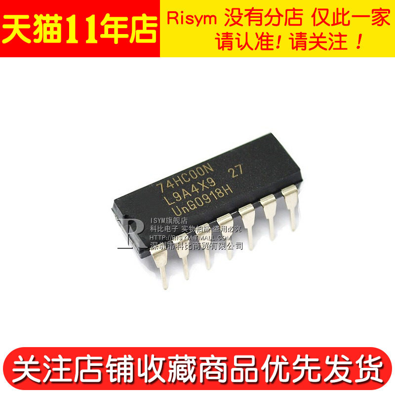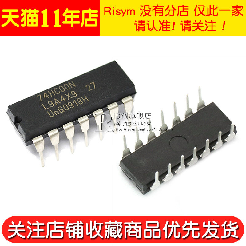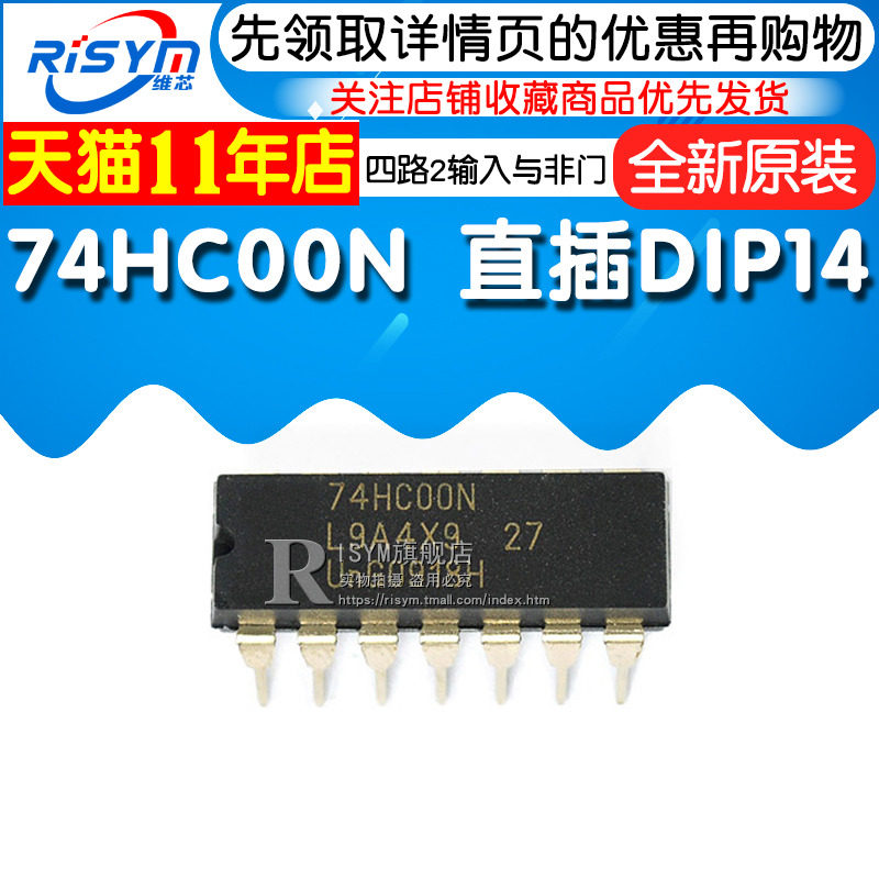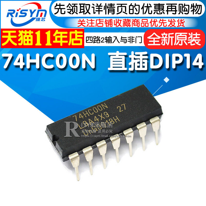 Risym Новый оригинальный 74HC00N Four -Way 2 входной и не -деревянной прямой вставки DIP14 Одиночный микрокомпьютер