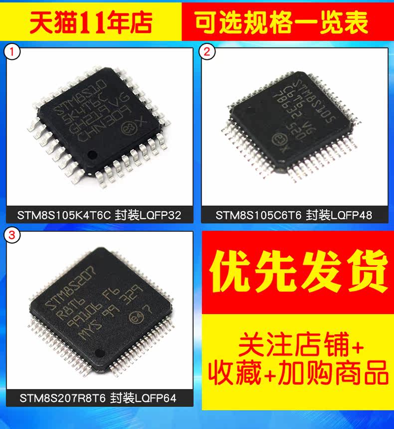 | Цвет: | STM8S105K4T6C Пакет LQFP32 (1 часть), STM8S105C6T6-упакованный LQFP48 (1 кусок), STM8S207R8T6 Package LQFP64 (1 часть) |