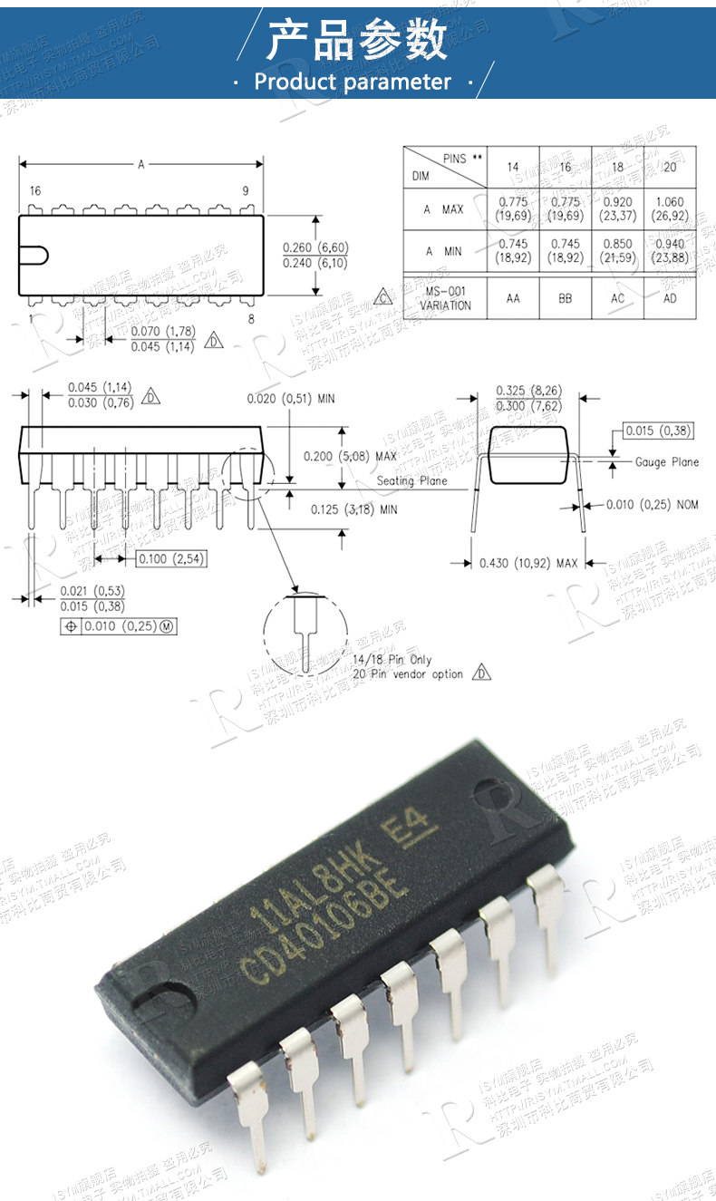 Risym CD40106BE Sixth Road Schmidt Триггер инкапсулирует чип Dip14