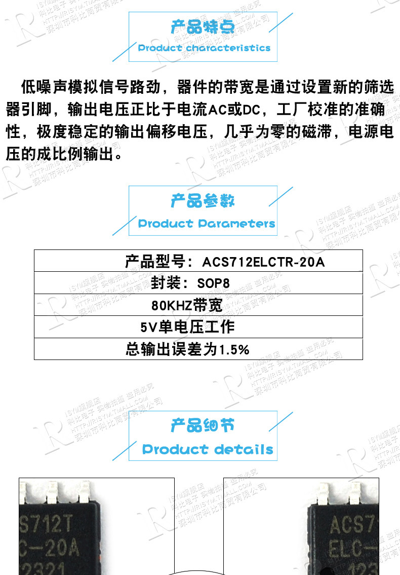 Risym ACS712LCTR-20A-T ACS712T-EEC-20A Patch SOP8 IC Чип