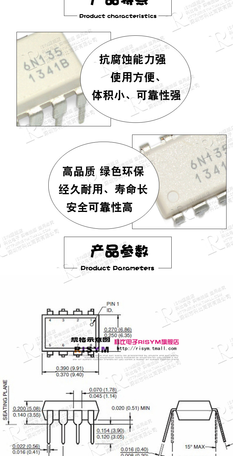 Risym Новый оригинальный 6N135 High -Speed Optocoupler Direct Packing Dip8