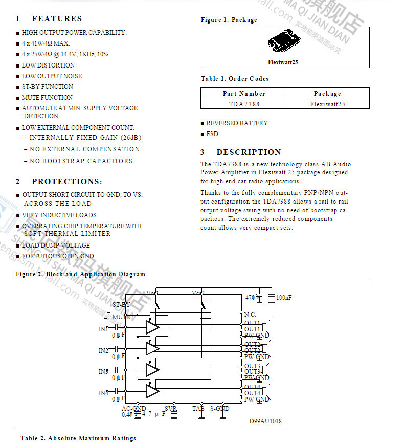 晟记 TDA7388 CD7388CZ YD7388 CAR Audio Amplifier Zip-25 PIN
