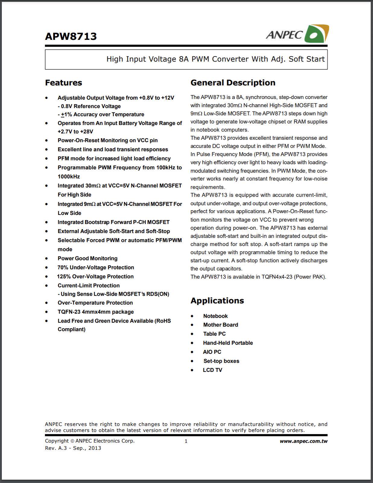 APW8713AQBI-TRG APW8713A APW8713 APW8713E QFN APW8724