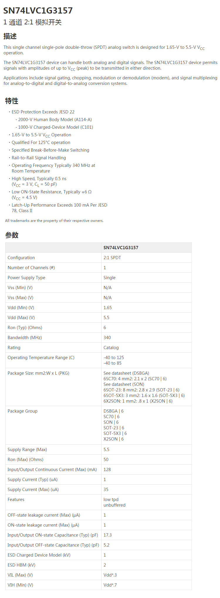 Оригинальный подлинный SN74LVC1G3157DBVR SOT-23-6 1 канал 2: 1 Переключатель моделирования