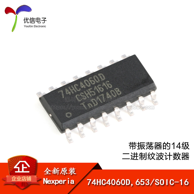 Оригинальный 14-уровневый двоичный счетчик пульсаций 74HC4060D, 653 SOIC-16 с осциллятором