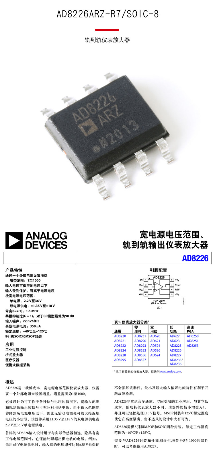 Оригинальный аутентичный патч AD8226ARZ-R7 SOIC-8-RAIL TO RAIL BALM IC Чип