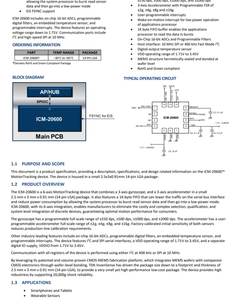 Оригинальный ICM-20600 LGA-14 6-осевой датчик движения MEMS 3-осевой гироскоп + 3-осевой акселерометр
