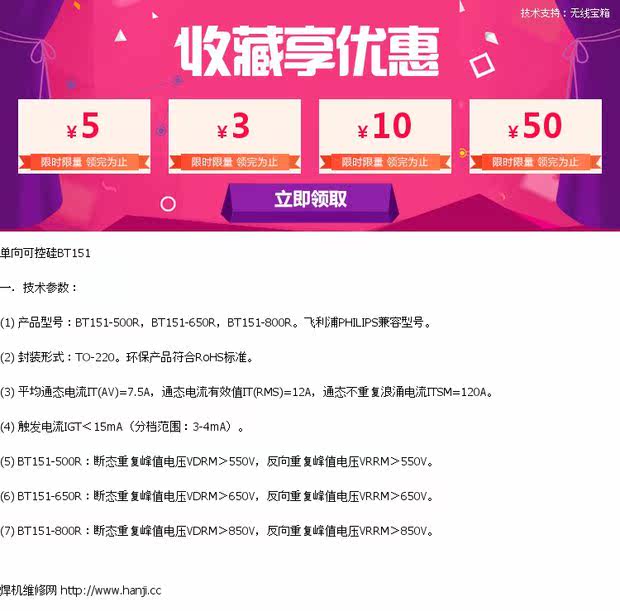 BT151 KR NBC LINE POARD Обычно используется 7.5A однонаправленный тиристор
