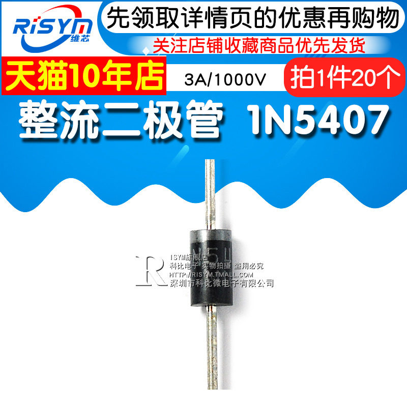 Risym выпрямитель диод 1N5407 IN5407 3A/1000V Прямая вставка 20 Плагин 20