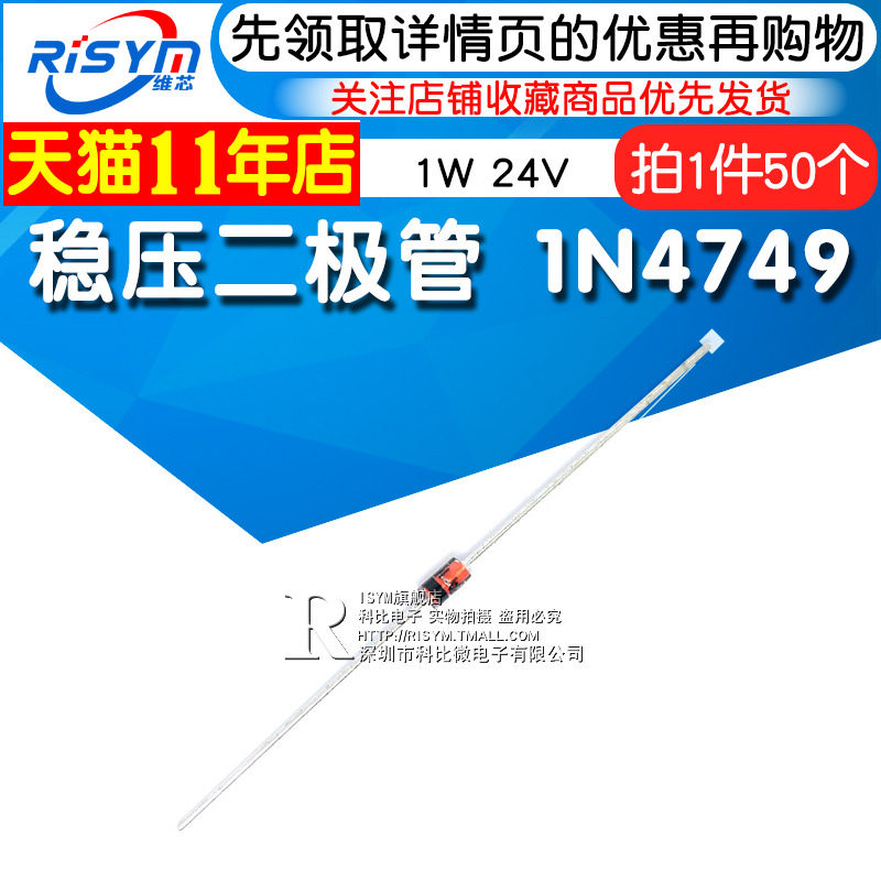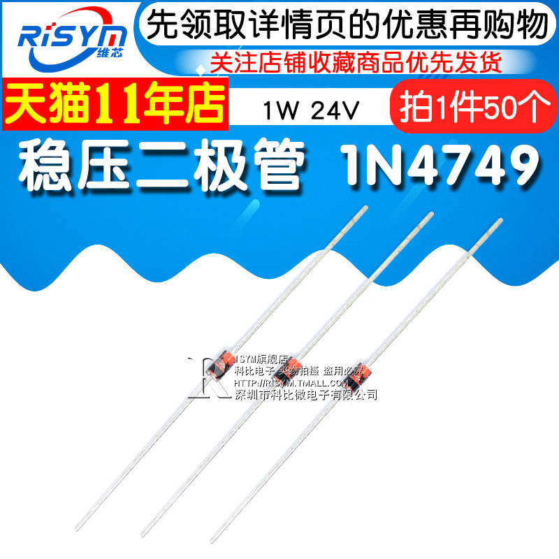 Disym Stabilizer Diode 1N4749 IN4749A Прямая заглушка -в стеклянном напряжении труба 1 Вт 24 В 50