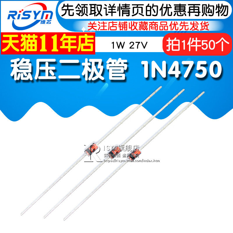 Disym Stabilizer Diode 1N4750 IN4750A напряжение напряжения Стеклянная трубка 1W 27 В DO-41 50